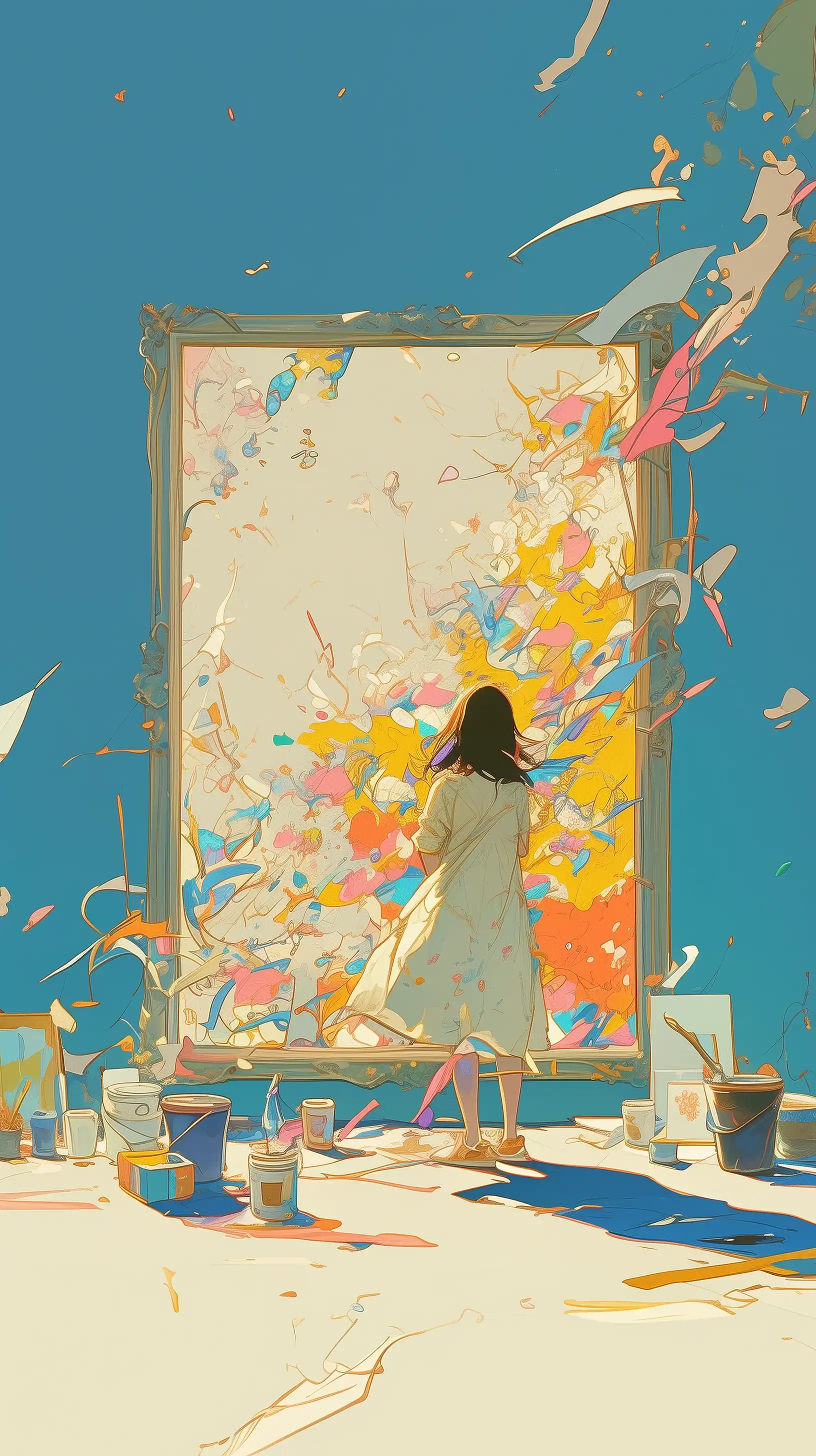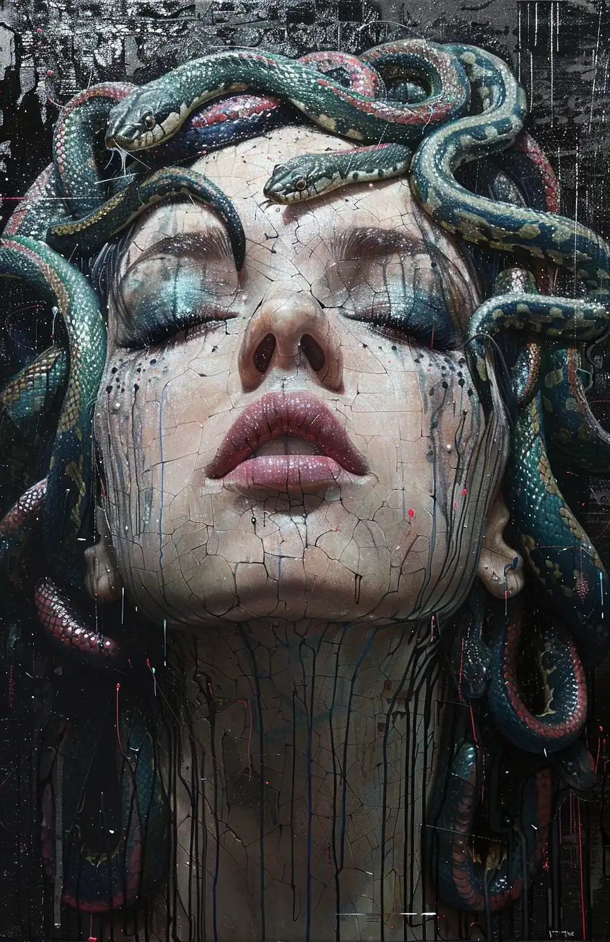 fashion editorial, a close up portrait of a dark shorthaired beautiful naked woman with closed eyes in studio with painted neon shiny colors face, highres, realistic photo, professional photography, cinematic angle, dynamic light back shining,
