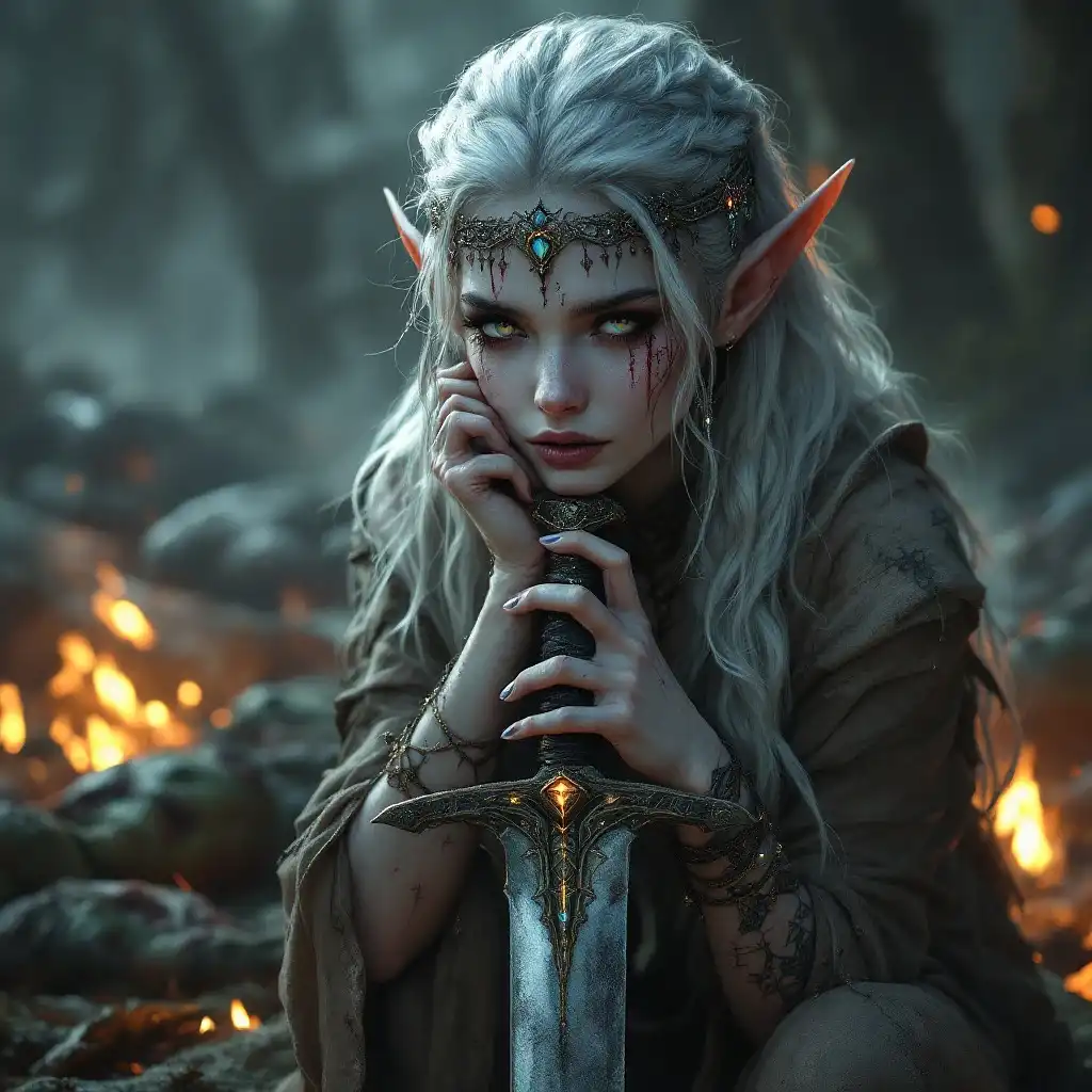 一位有着齐肩波浪状金发的女子,身穿白色短袖竖条纹扣式衬衫和深色短裤,坐在城市街道低矮的石墙上,背景灯光和人都模糊不清。她面对镜头,双臂交叉在膝盖上,略微向前倾斜,左臂缠绕在右臂上,双腿略微张开,双脚搁在墙上。中性的表情带着一丝微笑。自然采光突出了她的特征和装备。
