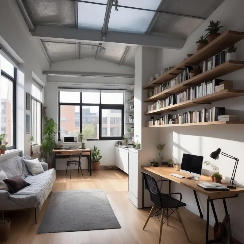 A beautiful artistic creative tree house, its cozy and full of candles and candle lights with a bug window open a fat cat sleeping