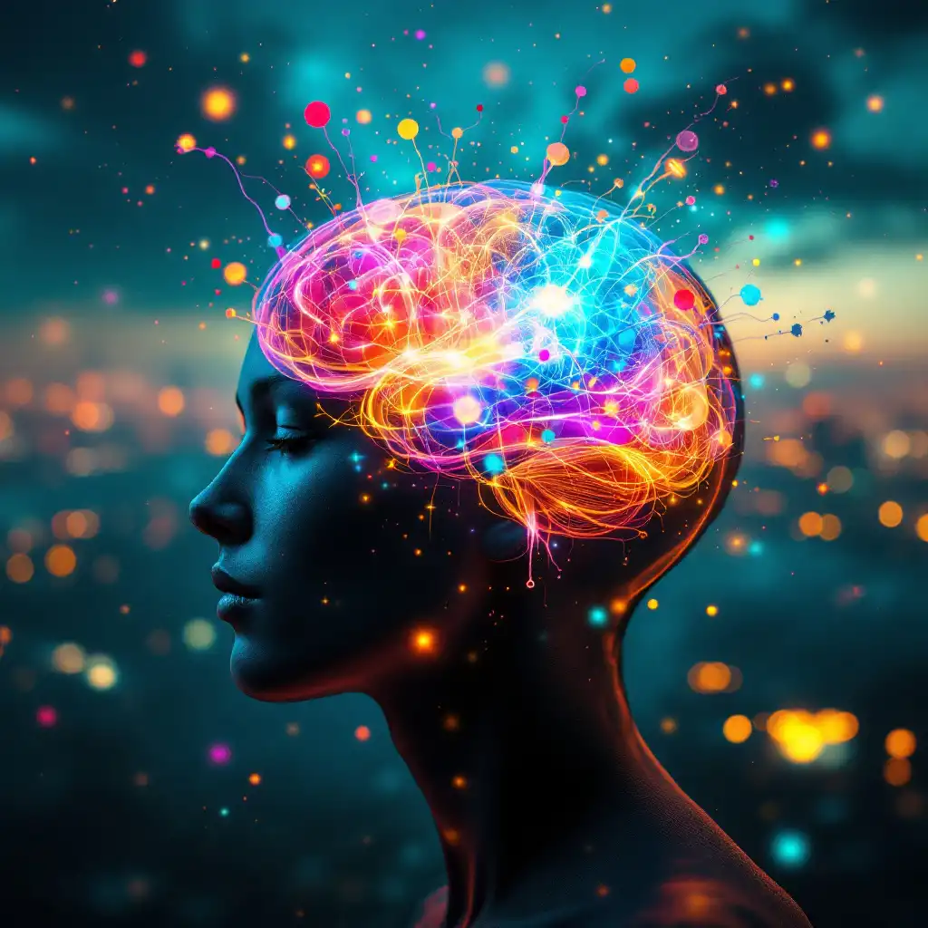 The scene blends cool and warm tones: blues and grays represent the threat of the disease, while shades of orange and yellow convey hope and victory over tuberculosis.