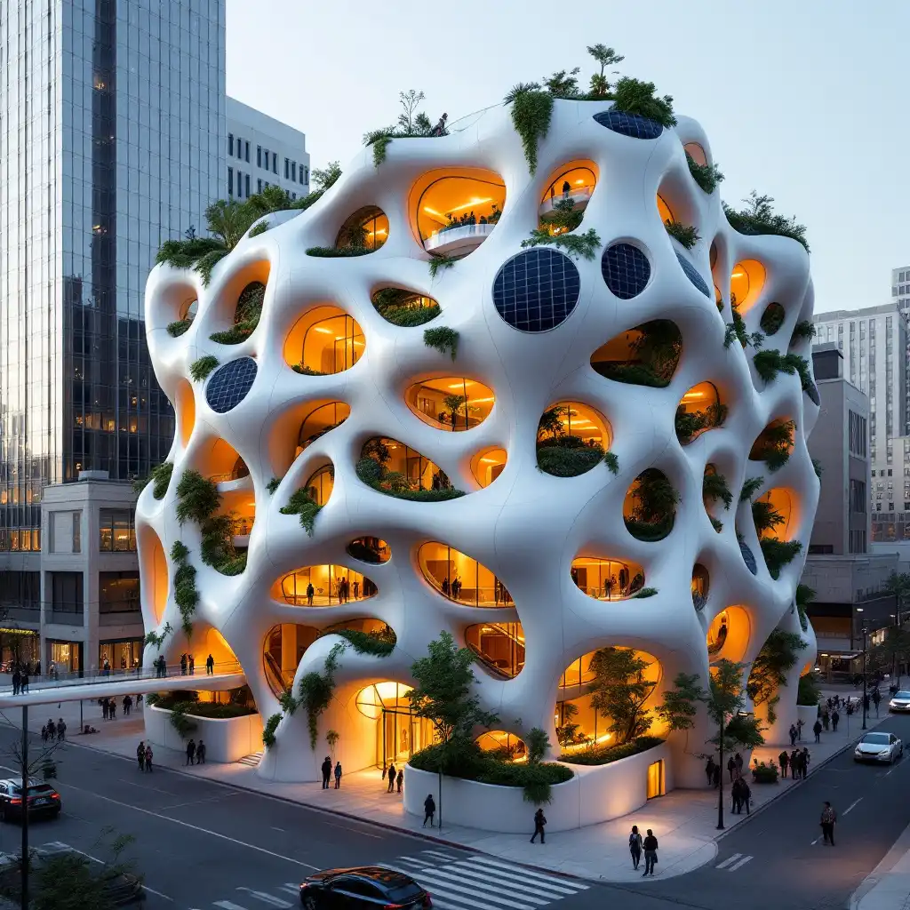 坐落在高耸的树木中,一座迷人的白色小屋以其结构整洁的立面和舒适的门廊散发出温暖和诱人的魅力。柔和的金光从复古风格的灯笼中溢出,照亮了前廊,前廊设有乡村风格的木凳,上面装饰着花卉垫,而入口两侧的盆花则增添了充满活力的绿色植物。整齐铺设的走道通向家