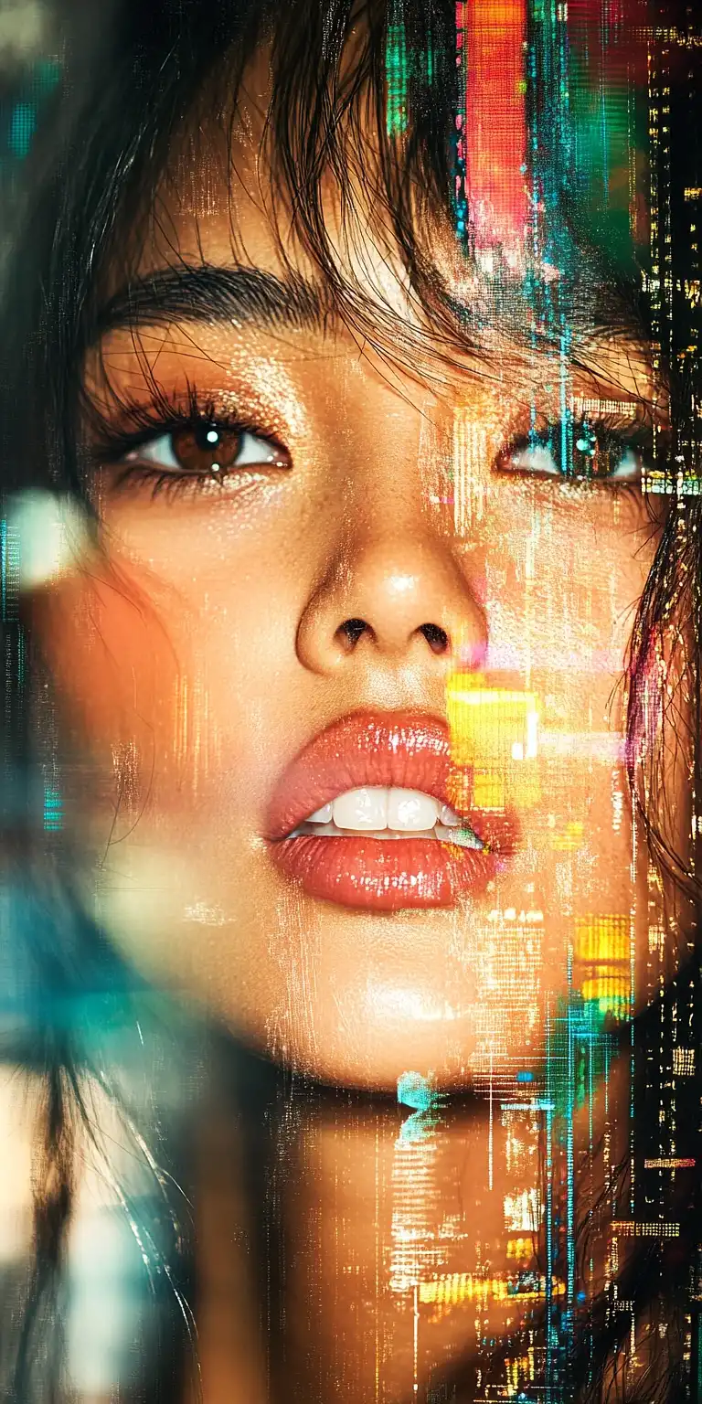 A woman with long brunette hair is seated on a large tree branch in a park. She's dressed in a simple white, spaghetti strap crop top with a plunging neckline. Her legs are bent up revealing her smooth skin under her flowing white skirt. Her expression is relaxed, with a slight smile playing on her lips. The background of the image reveals a serene setting with trees and greenery. The lighting in the scene is natural, suggesting an overcast day with soft, diffused light casting gentle shadows around the woman.