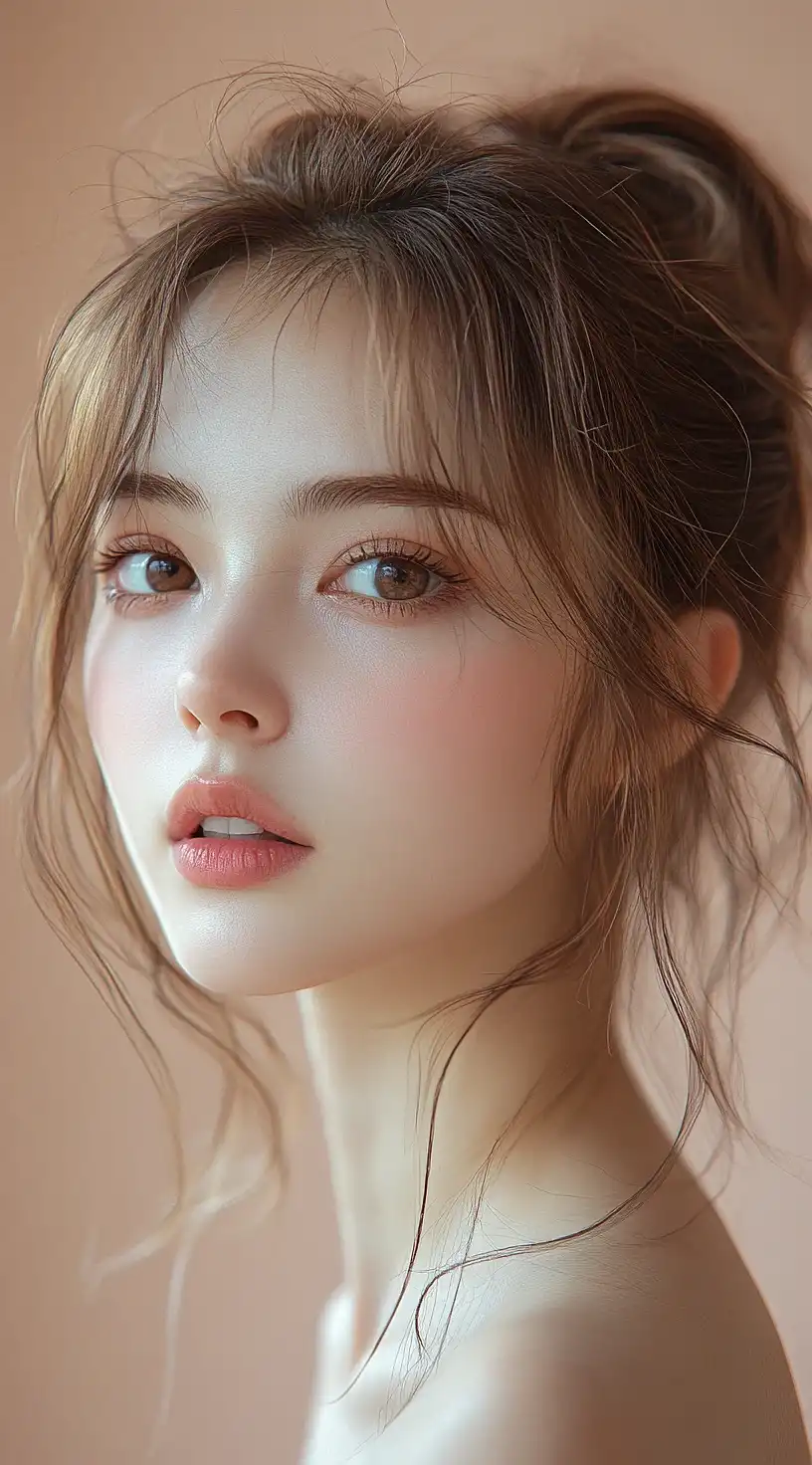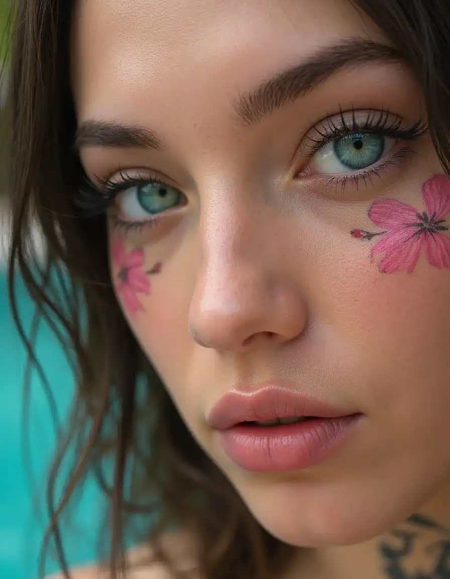 A woman stands confidently in front of a waterfall, her long brunette hair cascading down her shoulders. She is dressed in a crop top and blue jeans, her gaze directed towards the camera with a slight smile playing on her lips. The waterfall behind her adds a serene backdrop to the scene, its misty spray creating a soft contrast against the lush greenery surrounding it. The lighting in the image is natural, with the sun casting dappled shadows across the scene and highlighting the woman's features. The overall atmosphere of the image is one of tranquility and beauty, capturing a moment of peace amidst nature's grandeur. aidmahyperrealism