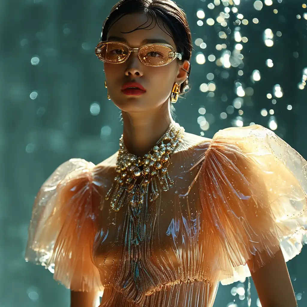 (glamorous young woman), 23 years old, (red-haired Latina), stylish black leather jacket, chic black boots, striking red low-cut shirt, fashionable long jeans, adorned with heavy jewelry, bold makeup look, confident pose, desert background, high-quality portrait, (dramatic lighting), captivating ambiance.