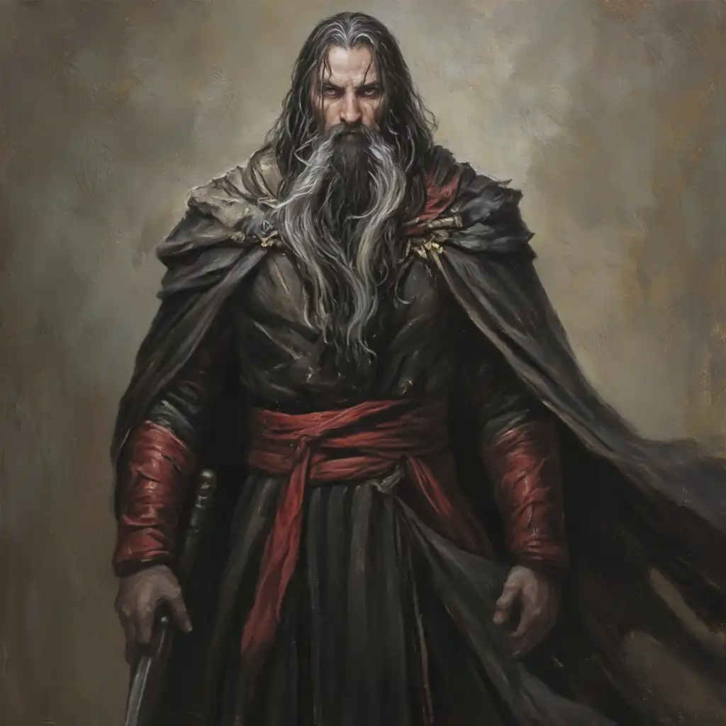 一只黑色、深灰色和浅灰色的狼咆哮着,背景是森林,前面栖息着一只哈比鹰