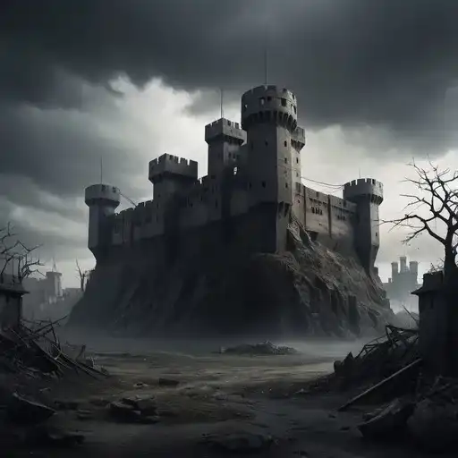 一个人坐在草地上想着他在树下寂寞的生活,一个直径约5-10米的小宇宙飞船就站在他身后的背景中,这是他的飞船。这个人穿着像宇航员的衣服,没有头盔,我们看不到他的脸。在沙漠环境中,一个外星星球上的一切都在昏暗的夜空下。温暖的颜色,没有冷的颜色温度。所有这些都是法国艺术家莫比乌斯的忧郁艺术风格。