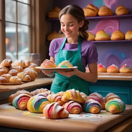 Bathed in radiant light, a divine figure adorned in vibrant silks stands amidst a lush, idyllic landscape, exuding serenity and grace. This celestial being, holding a golden object in one hand while gesturing thoughtfully with the other, is surrounded by verdant mountains and cascading waterfalls that gently flow into a serene river. In the foreground, a peacock with iridescent feathers complements the tranquil harmony, while various other birds flit about playfully. The scene is framed by a kaleidoscope of colorful flowers and lush foliage, creating a vibrant tapestry that celebrates nature's beauty and reverence. The overall atmosphere conveys a sense of peace, spirituality, and connection to the natural world.