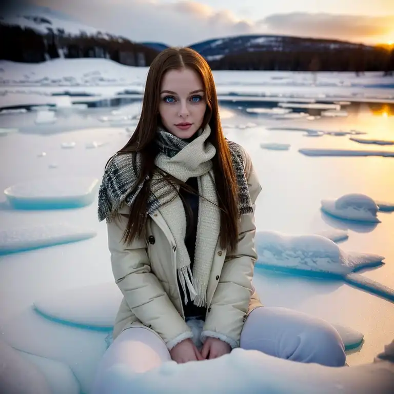 เธออยู่กลางทะเลสาบน้ำแข็ง หิมะกำลังตกอย่างหนัก จนทำให้ทะเลสาบกลายเป็นเป็นน้ำแข็งทั้งหมด เธอมองแสงจากแคมป์ไฟ