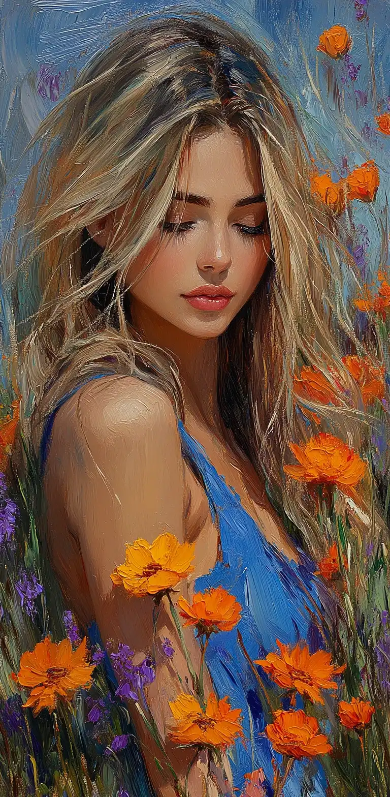 维京女人的照片,深色长发,金色的亮点,浅蓝色的眼睛,丰满的嘴唇,灿烂的笑容,穿着适合维京迷你女式的高跟鞋,坐在沙漠绿洲上
