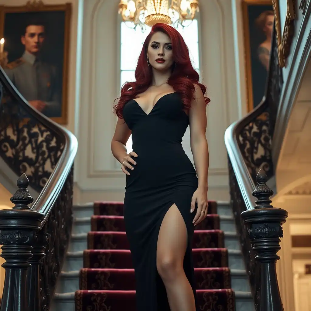 High-resolution, cinematic-style photograph featuring a gorgeous ultra-muscular 30-year-old Czechian drag queen bodybuilder dressed as a female Ziggy Stardust. 8 inch stiletto platform high heel boots. Dark eyeshadow and dark red lipstick. Posing in the street at night.
