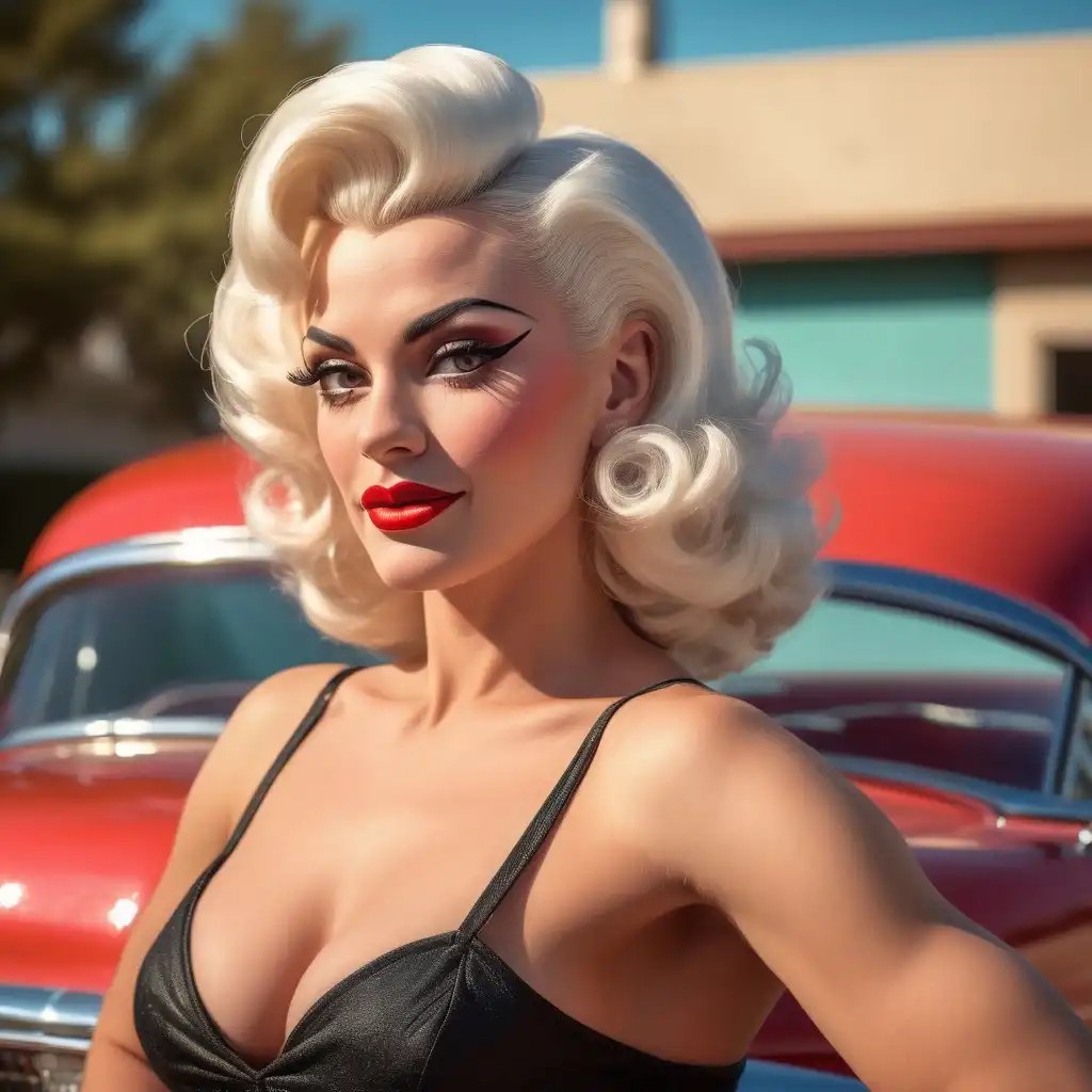 月球上的哈雷戴维森经销店开业。他们把新的巡洋舰摩托车排在经销商前面。客户从倾斜的角度看摩托车,不仅可以欣赏摩托车的美丽,还可以欣赏背景中带有Harley Davidson markquee标志的风景。