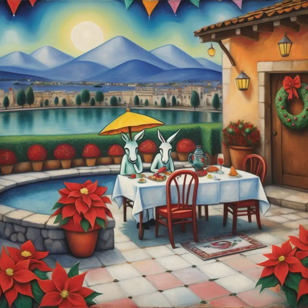 头部和颈部有火烈鸟的人体。他们穿着黑色西装,口袋里挂着一朵粉红色的花。他们戴着一顶黑色的高顶礼帽,粉红色的羽毛塞进粉红色的丝带中。他们手里拿着一把带有粉红色羽毛雨伞和黑色手柄的雨伞。现实主义,超现实主义。油品
