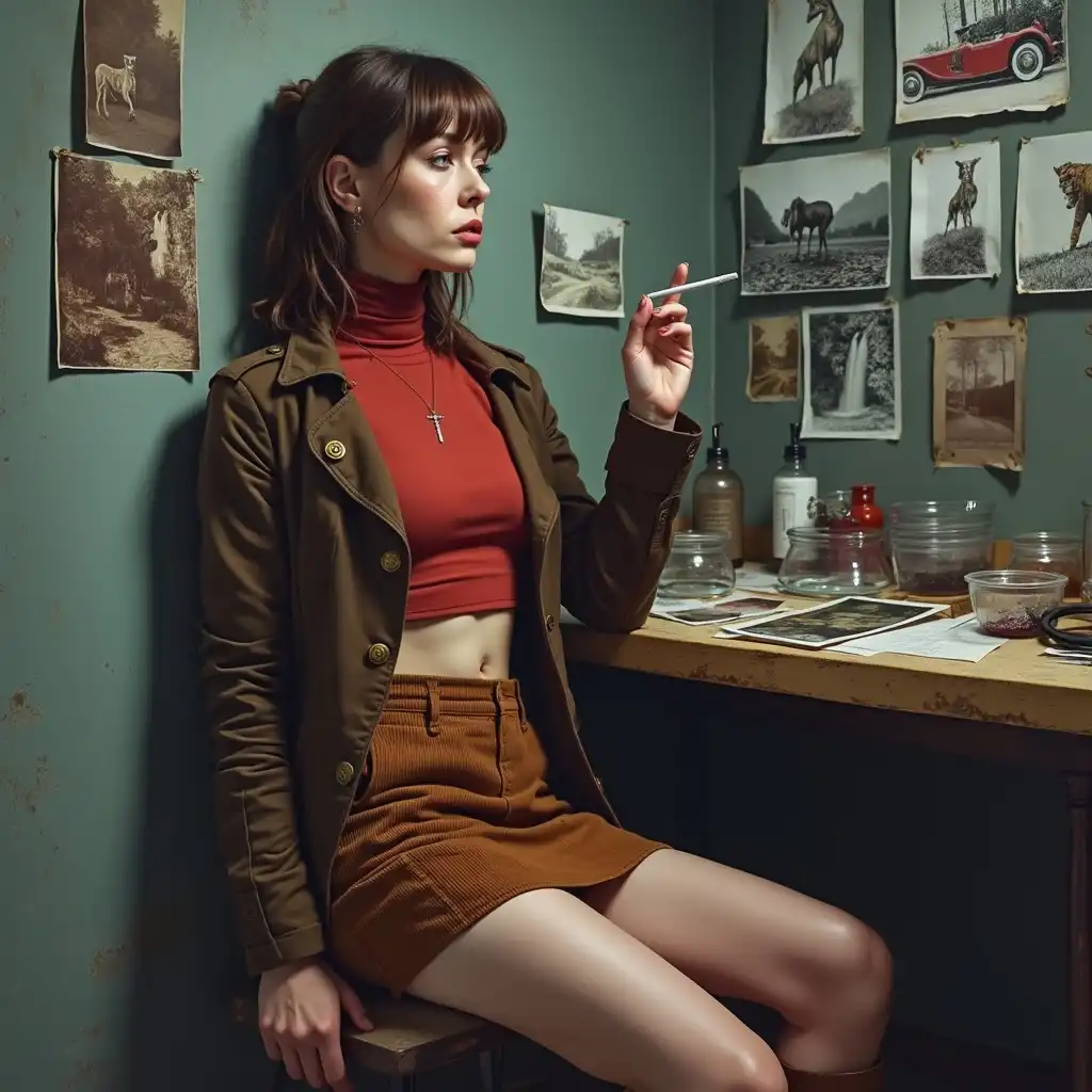 主角 (年轻的巫师),(美丽的肖像油画),苍白的皮肤,锐利的特征,(强烈的锐利的眼睛),(定义的锐利的下颚线),深色的头发 (短到中等长度),穿着所有深色,流动的斗篷在他身后滚滚,手套,(史诗般的幻想氛围),织物和纹理的复杂细节,戏剧性的灯光投射阴影,超细节,令人回味的心情。