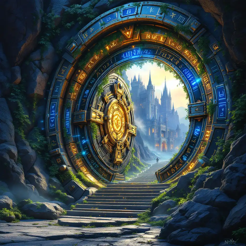 用神秘和奥德赛注入的主题为太空中的永恒之门创建数字插图。背景应具有古老主题的天体物理学元素。使天体物理学更加盛行,并在周围添加早期天体物理学研究的轻微蓝图,没有文字和黑暗主题。使用紫色,米色和深蓝色的颜色。使用希腊设计主题
