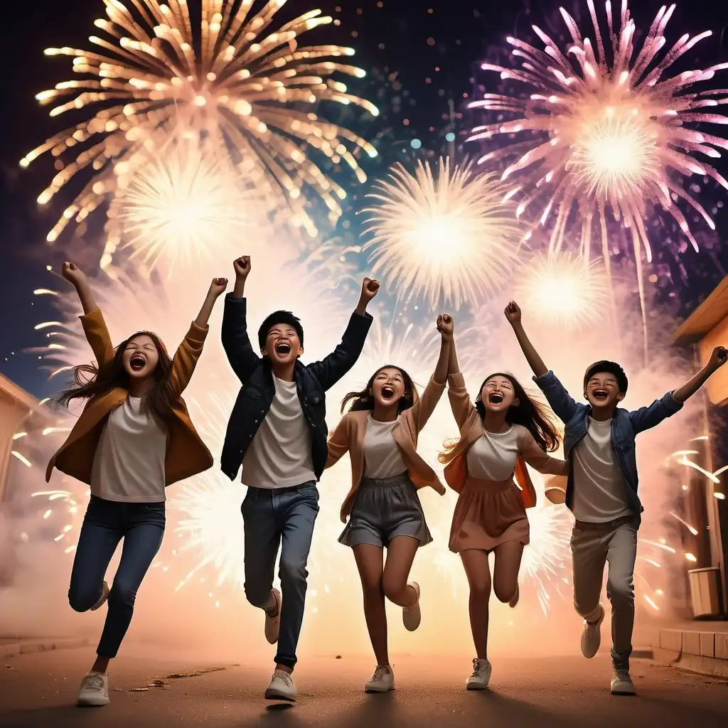The Peanuts Gang aer celebrating the New Year 2025 with festivities and fireworks.