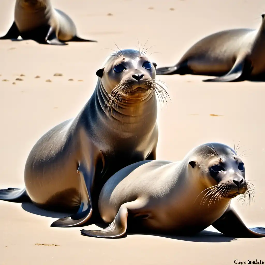 许多海豹在海豹形状的海中游泳