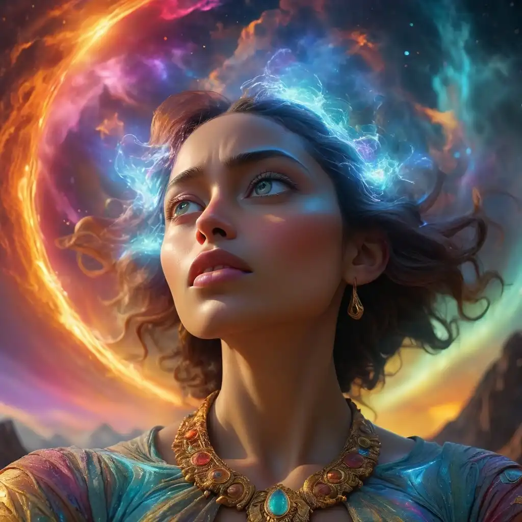 一个女人漂浮在一个巨大的泡泡里的高空