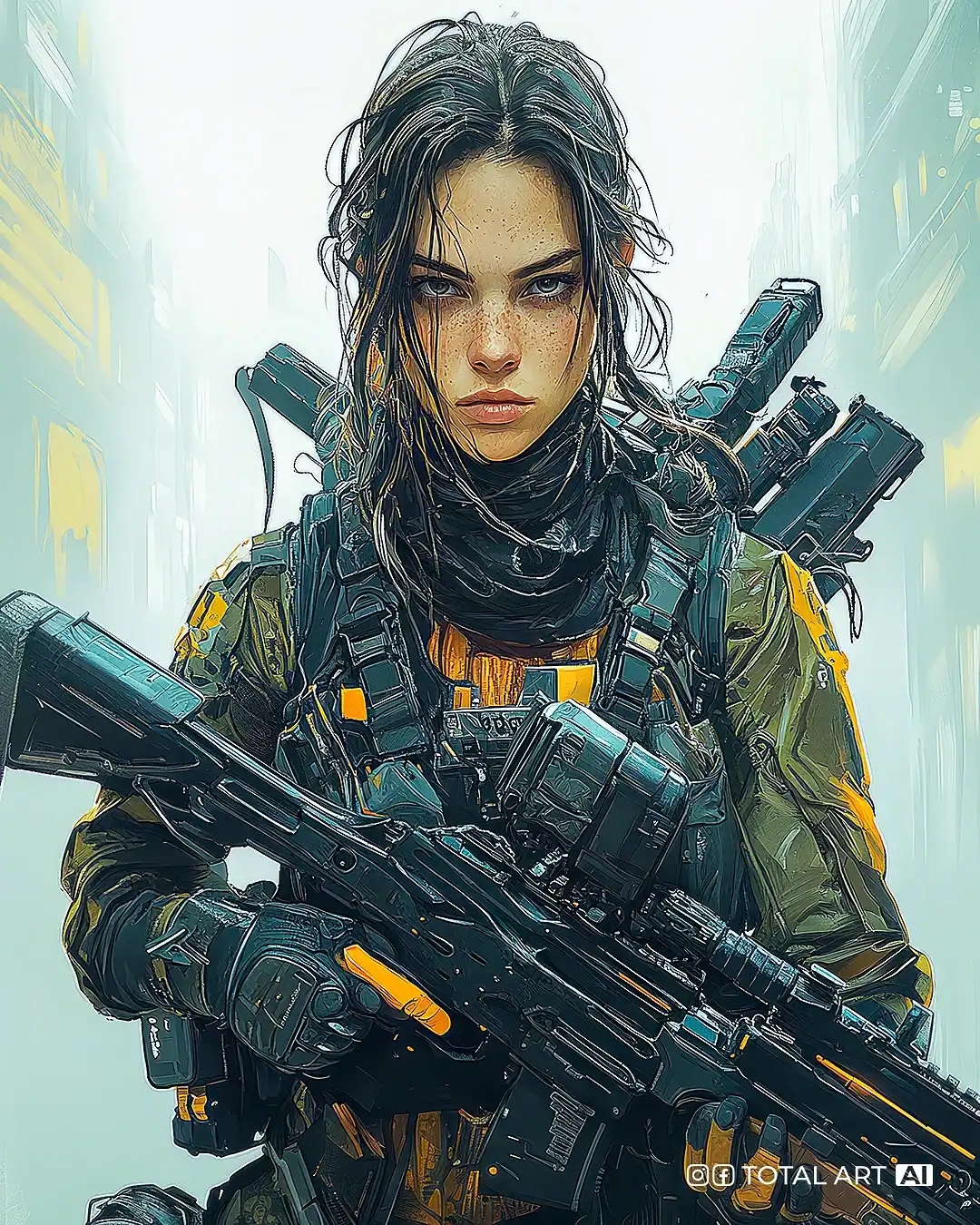 A young Russian woman macroview with dark red hair, piercings, wearing sunglasses and a black t-shirt, some tattoos, rock and roll style, standing in front of the Alone Cafe in Moskov , Russia, with her hands shaking themselves . Urban environment, some people in the background in the gallery. The photo should be frontal, highlighting the black t-shirt. She is not wearing any accessories. UHD --ar 9:16