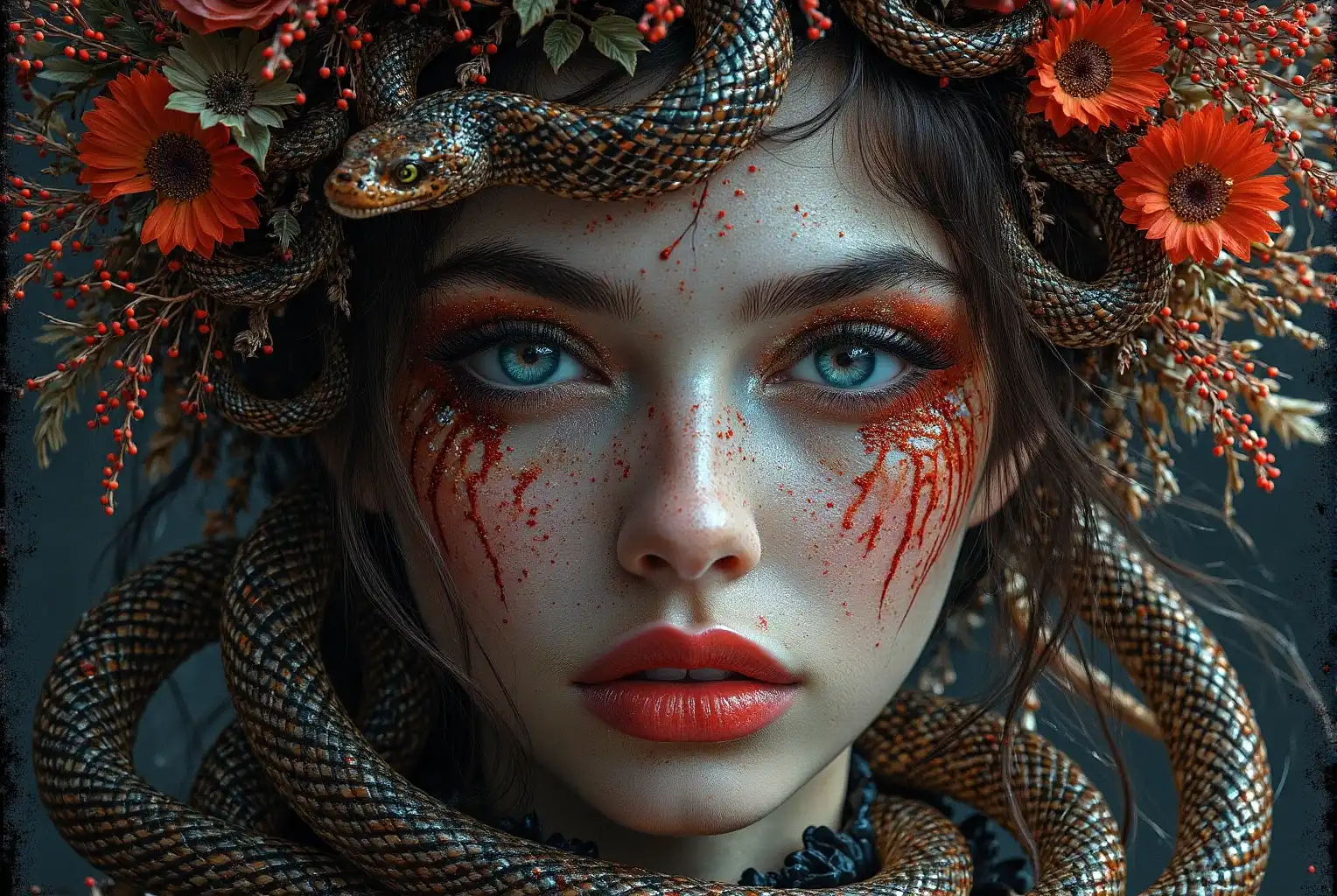 一只黑白相间的斑点小猫独自在雨中行走,它脆弱的身体被水倾泻而下,睁大焦虑的眼睛扫视着周围空荡荡的干燥街道。在它旁边,一只稍大的虎斑小猫在黑白小猫上撑着一把小伞,使其免受倾盆大雨的影响。干燥的街道和孤立的雨水之间的对比增强了脆弱感
