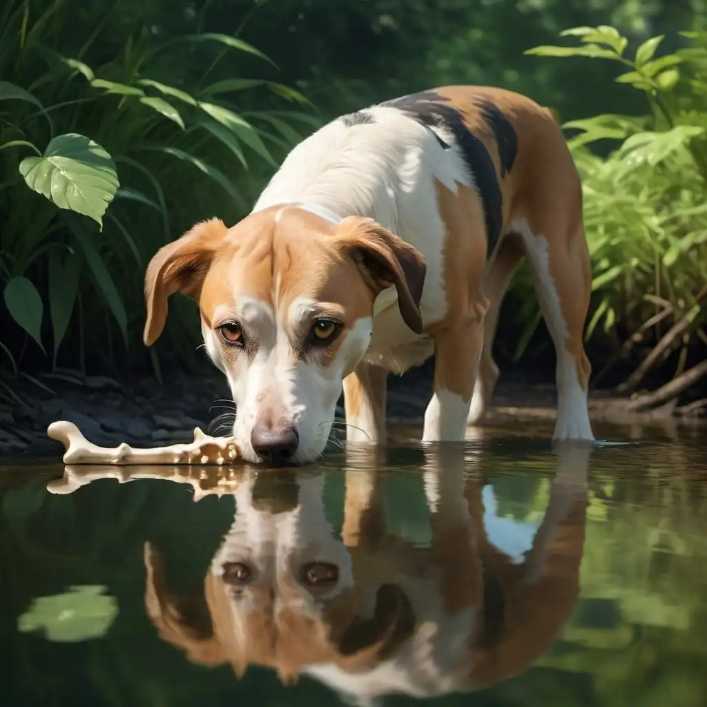 Frosty deer dragon in the arctic woods in front of a frozen river
