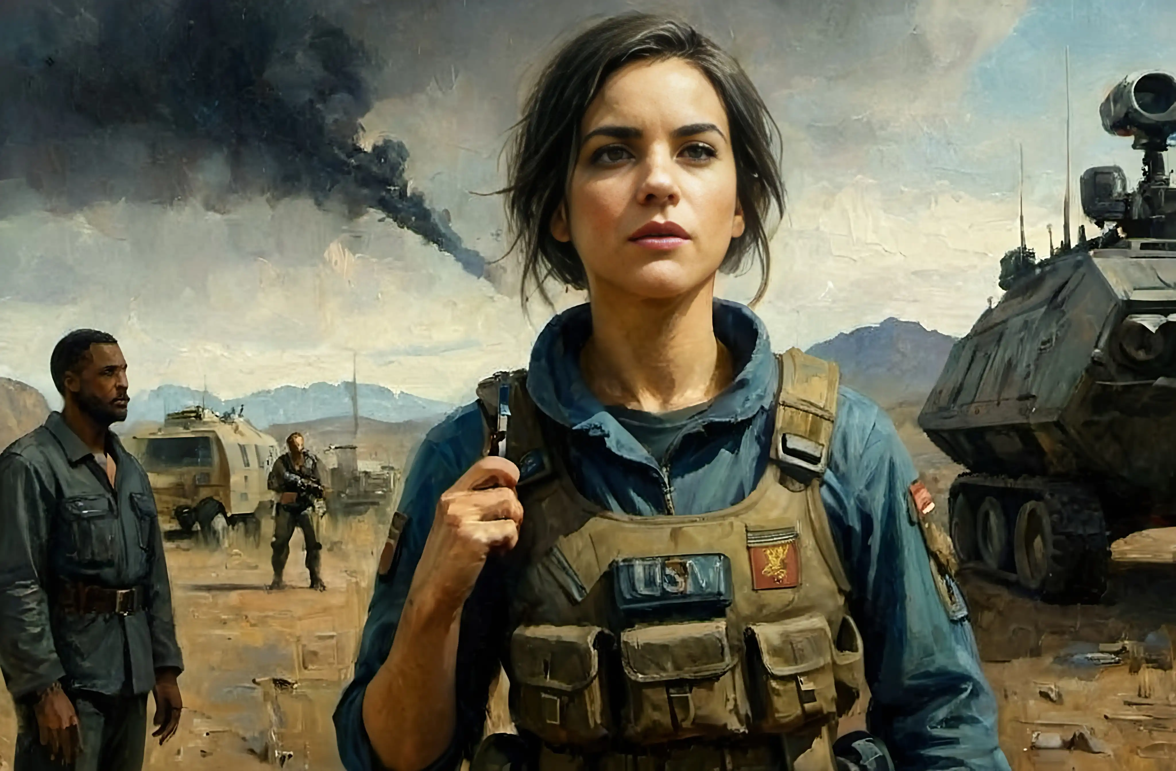克洛伊·班尼特穿着美国cm海军陆战队装甲的肖像画,来自外星人,靠在UA 571-C哨兵枪上。超逼真,概念艺术,复杂的细节,高度详细,逼真,怪异,辛烷值渲染,8 k,虚幻引擎。artgerm和greg rutkowski和magali villeneuve和alphonse mucha的艺术