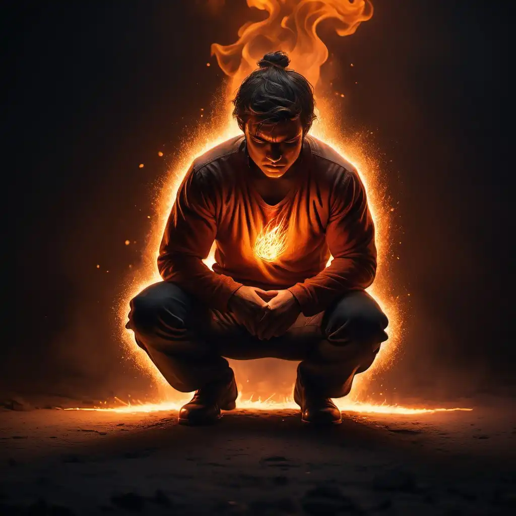 The figure stepping out of the flames onto a clear path. Prompt: "A cinematic scene of a figure stepping through flames onto a glowing emerald path, symbolizing transformation. 9:16 aspect ratio."