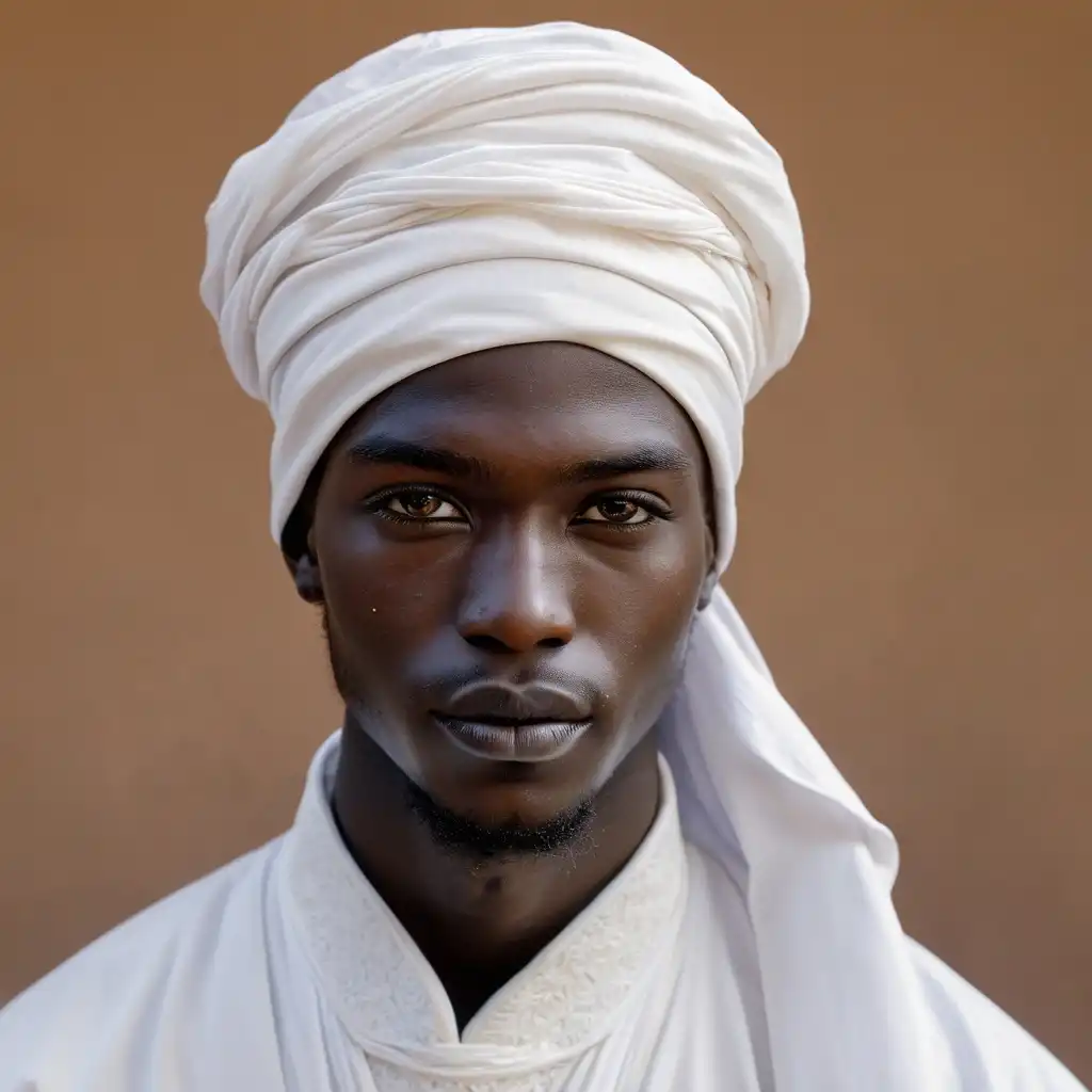 A portrait of dangara old man wearing a white muslim turban, african